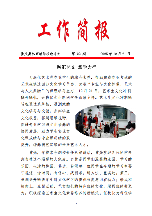 重庆奥林高辅学校高三艺术生文化集训开班啦